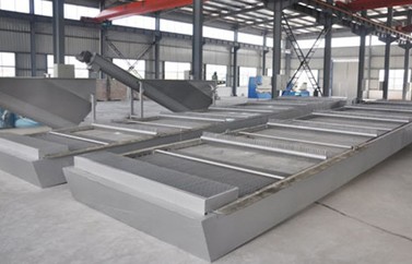 鏈板式回轉(zhuǎn)式格柵除污機為粗格柵,又稱雨水格柵、反撈式格柵,是一種用于清除水中較大固體懸浮物的大型粗格柵設(shè)備,本裝置可以連續(xù)自動清除液體中的固體懸浮物,設(shè)計合理、結(jié)構(gòu)簡單、運轉(zhuǎn)安全、可靠、自動化程度高,可廣泛應(yīng)用于城市污水處理、自來水廠取水口、雨水泵站、發(fā)電廠冷卻水取水口等大流量的水處理場所。設(shè)備機架結(jié)構(gòu)參照了回轉(zhuǎn)式格柵除污機的優(yōu)點,采用與眾不同的工作原理,即耙齒鏈在柵條前后作回轉(zhuǎn)運動,到耙齒運轉(zhuǎn)到柵條的迎水面時,即插入柵條縫隙中由下往上作清撈動作。耙齒鏈采用封閉式,不讓雜物侵入,使設(shè)備運轉(zhuǎn)更加平穩(wěn)。設(shè)備安裝時整機吊裝,只需在集水井兩側(cè)的地坪上預埋兩塊鋼板,土建簡單節(jié)約,安裝維修方便。