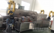 2、本生產線分為機械手移載產品至菱形線、取樣與安全防護門、菱形輸送線、預熱爐、產品出爐溫控監測及位置檢測、噴硅系統、視覺檢測系統、流量監測系統、NG排除機構、機械手移載至網帶輸送線、取樣與安全防護門、網帶輸送線、固化爐、機械手移載至包裝線、取樣與安全防護門;系統分為兩種生產模,硅化線和非硅化。